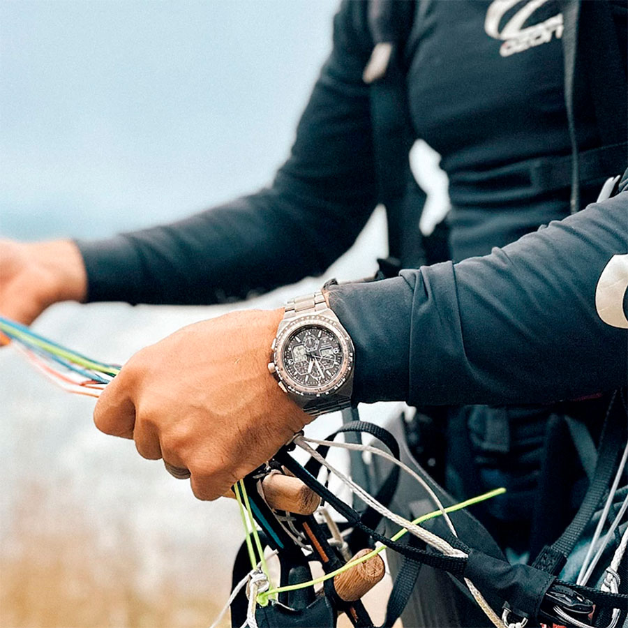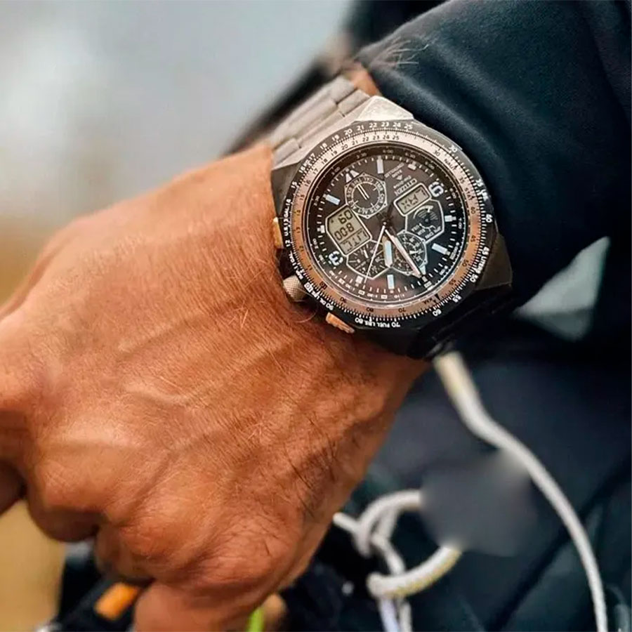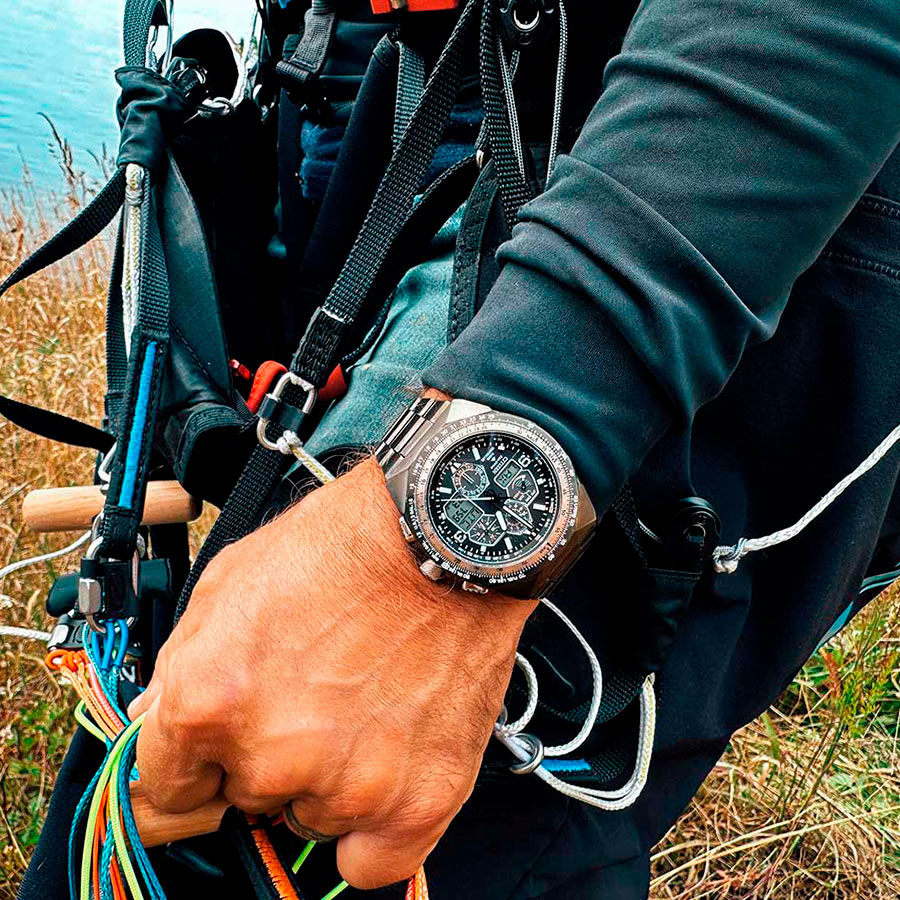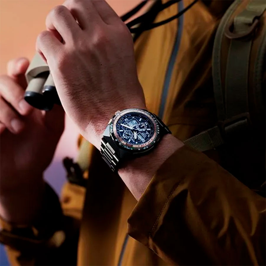 Калибр механизма — U680. Аккумулятор данной модели заряжается от любого источника света. Срок работы аккумулятора с полным зарядом — около 6-ти месяцев. Примерный срок службы аккумулятора — 10 лет. Функциональность данной модели: радиоконтроль точного времени; функция двойного времени; режим летнего времени; автоматический календарь; отображение времени суток (24-х часовая шкала); функция предупреждения о недостаточном заряде и функция предотвращения перезаряда; индикатор заряда батареи; режим энергосбережения; мировое время; одновременное отображение на циферблате двух разных часовых поясов; 2 будильника; секундомер с точностью 1/100 секунды и измерением до 24 часов; вращающийся безель с логарифмической линейкой; таймер обратного отсчета с диапазоном 99 минут; диодная подсветка циферблата. Установлено устойчивое к появлению царапин сапфировое стекло с антибликовым покрытием. Люминесцентное напыление на стрелках и метках (светятся в темноте). Стальной браслет. На корпус и браслет нанесено стойкое PVD покрытие. Данная модель обладает высокой степенью водонепроницаемости WR200 (20 атм) и подходит для глубокого погружения под воду.