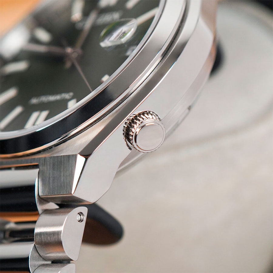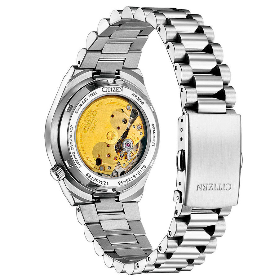 Механические наручные часы с автоподзаводом и возможностью ручного завода Citizen NJ0200-50X коллекции Automatic. Калибр механизма — 8210. Запас хода не менее 40-ка часов. Количество камней - 21. На данной модели отображается текущая дата. Установлено сапфировое стекло с увеличительным сегментом устойчивое к царапинам. Прозрачная завинчивающаяся задняя крышка. Стальной браслет. Стрелки и метки покрыты люминесцентным напылением (светятся в темноте). Водонепроницаемость WR50 (5 атм).