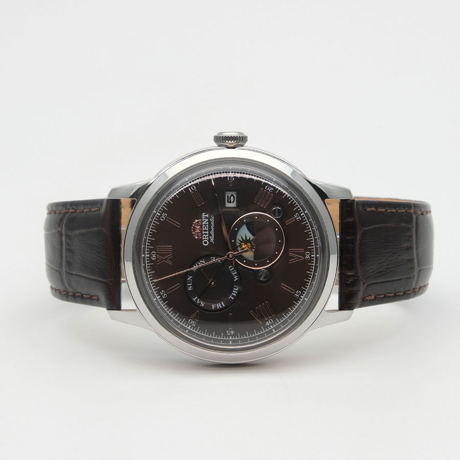 Мужские механические наручные часы с автоподзаводом и возможностью ручного завода Orient RA-AK0804Y (RA-AK0804Y10B) коллекции Multi Function. Калибр механизма — F6B24. Запас хода не менее 40-ка часов. Количество камней - 22. На данной модели отображается текущая дата, день недели и время суток (день/ночь). Установлено сферическое минеральное стекло. Прозрачная задняя крышка. Кожаный ремешок. Водонепроницаемость WR (3 атм).