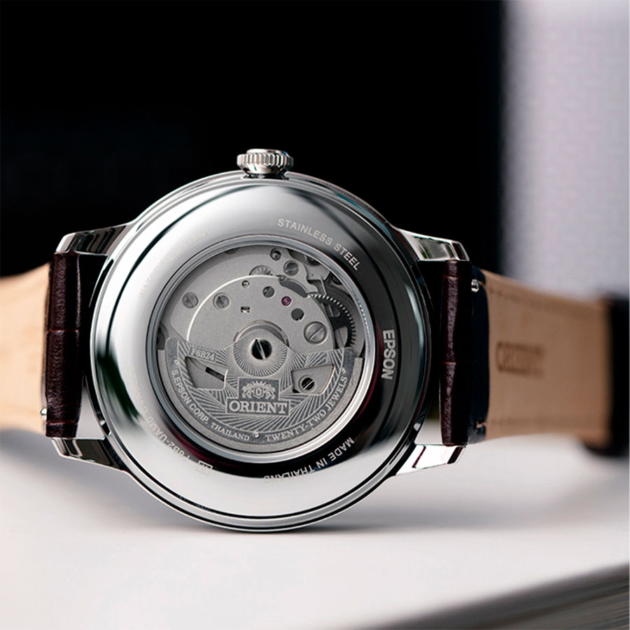Мужские механические наручные часы с автоподзаводом и возможностью ручного завода Orient RA-AK0805E (RA-AK0805E10B) коллекции Multi Function. Калибр механизма — F6B24. Запас хода не менее 40-ка часов. Количество камней - 22. На данной модели отображается текущая дата, день недели и время суток (день/ночь). Установлено сферическое минеральное стекло. Прозрачная задняя крышка. Кожаный ремешок. Водонепроницаемость WR (3 атм).