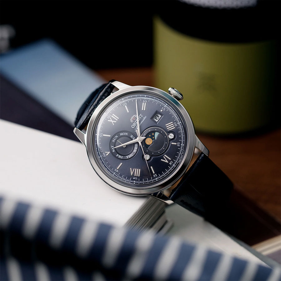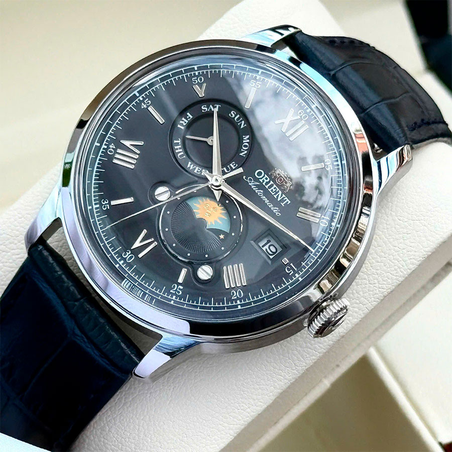 Мужские механические наручные часы с автоподзаводом и возможностью ручного завода Orient RA-AK0806L (RA-AK0806L10B) коллекции Multi Function. Калибр механизма — F6B24. Запас хода не менее 40-ка часов. Количество камней - 22. На данной модели отображается текущая дата, день недели и время суток (день/ночь). Установлено сферическое минеральное стекло. Прозрачная задняя крышка. Кожаный ремешок. Водонепроницаемость WR (3 атм).