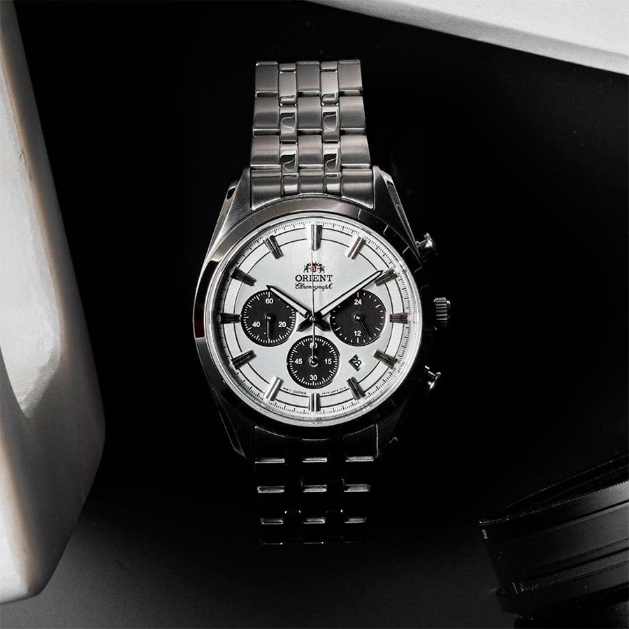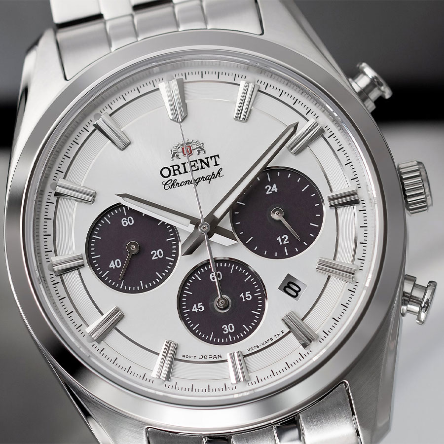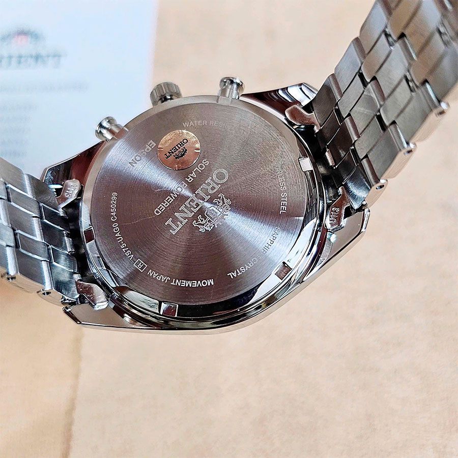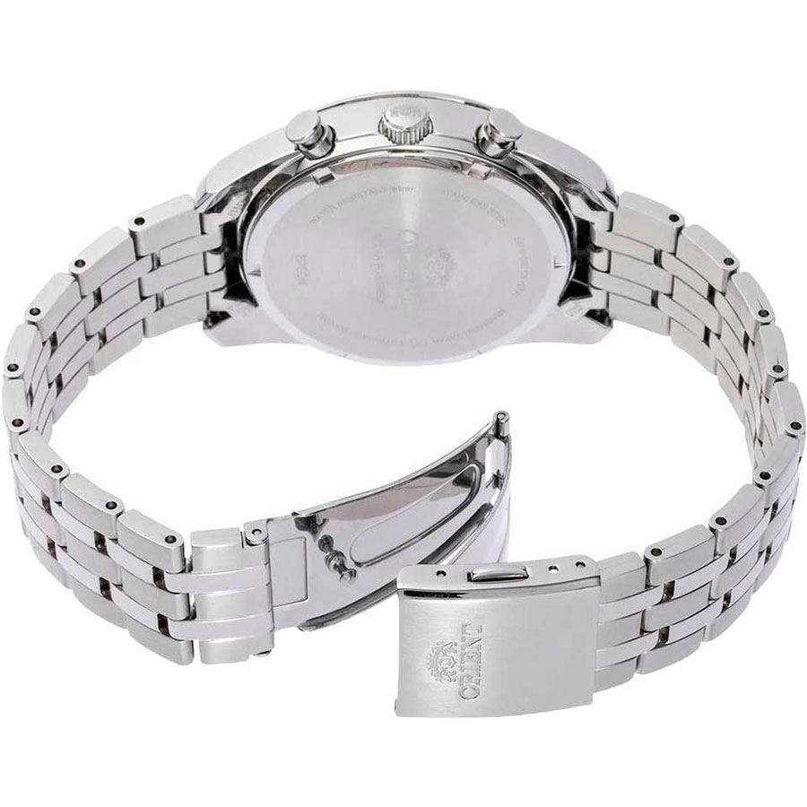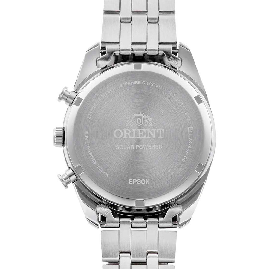 Мужские кварцевые наручные часы на солнечной батарее с хронографом (секундомером) Orient RA-TX0305S Chronograph Solar. Калибр механизма — VS752. Аккумулятор данной модели заряжается от любого источника света. Срок работы аккумулятора с полным зарядом — около 180 дней. Примерный срок службы аккумулятора — 10 лет. Присутствует функция информирования о недостаточном заряде. На данной модели отображается дата и время суток (24-х часовая шкала). Секундомер может отсчитывать до 60-ти минут. Установлено сапфировое стекло устойчивое к появлению царапин. Стрелки и метки покрыты люминесцентным напылением (светятся в темноте). Завинчивающаяся задняя крышка. Водонепроницаемость WR50 (5 атм).