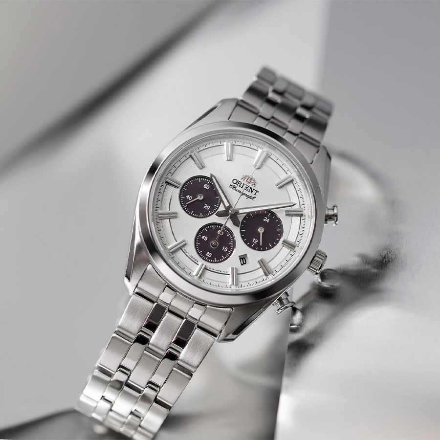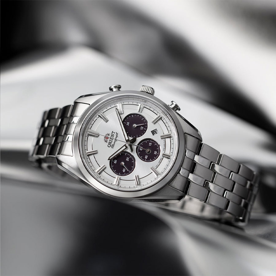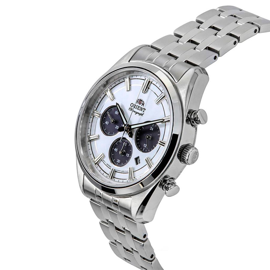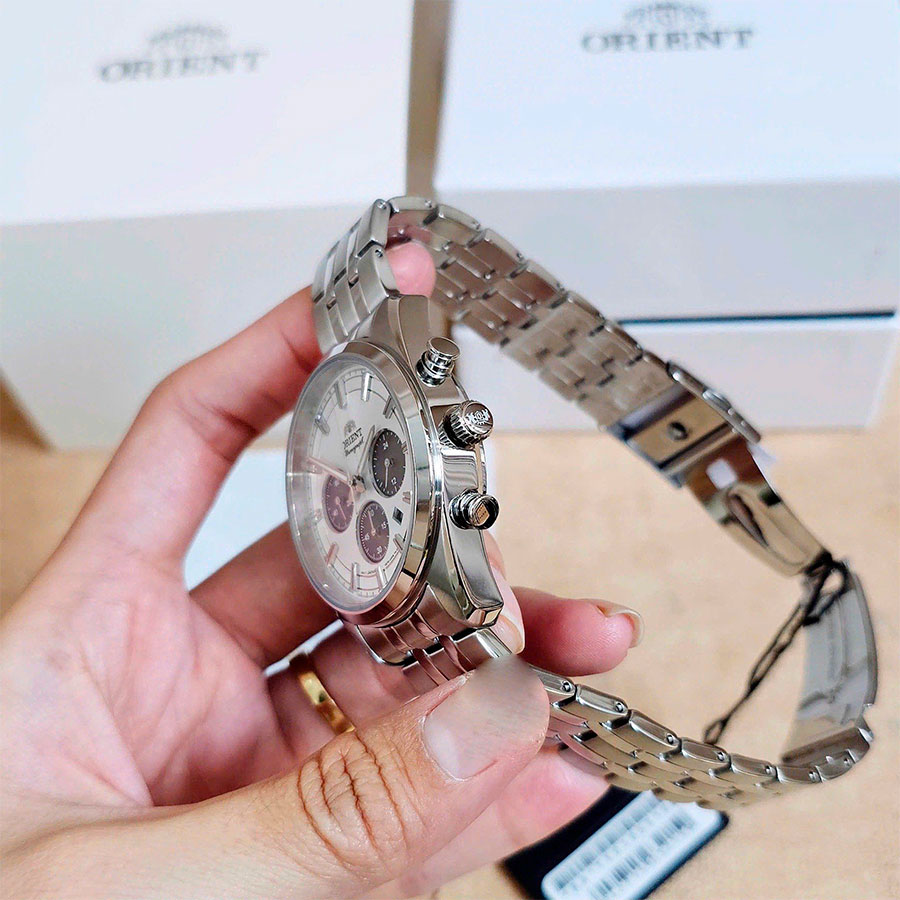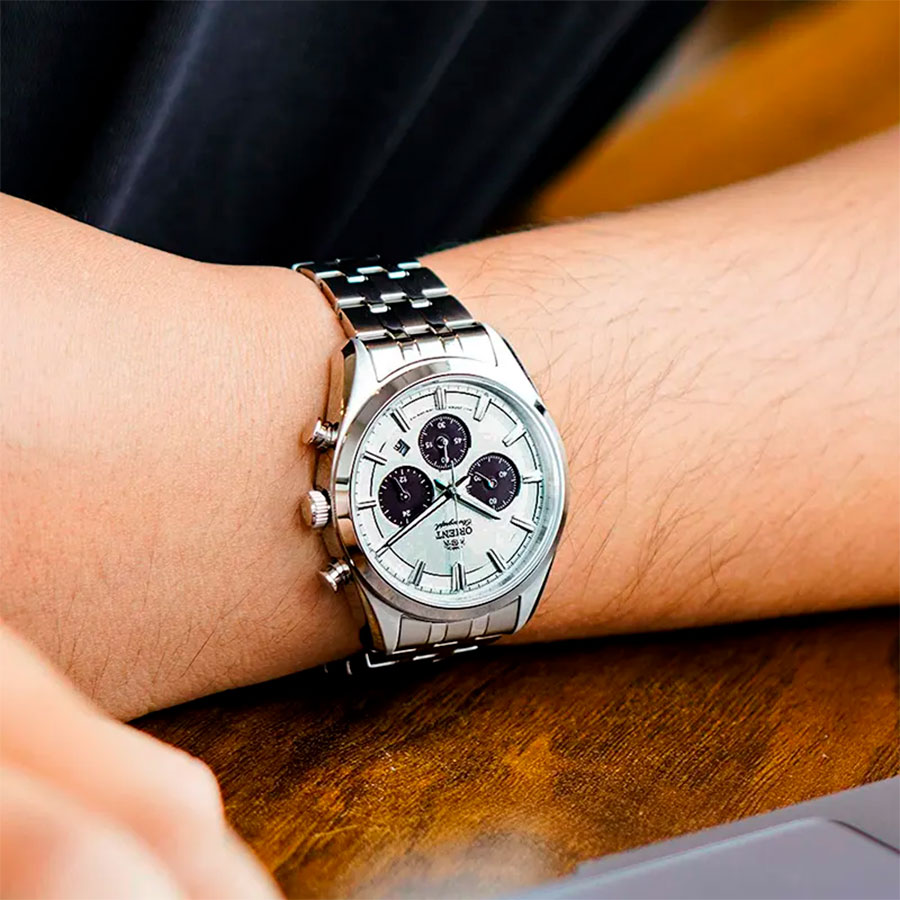 Мужские кварцевые наручные часы на солнечной батарее с хронографом (секундомером) Orient RA-TX0305S Chronograph Solar. Калибр механизма — VS752. Аккумулятор данной модели заряжается от любого источника света. Срок работы аккумулятора с полным зарядом — около 180 дней. Примерный срок службы аккумулятора — 10 лет. Присутствует функция информирования о недостаточном заряде. На данной модели отображается дата и время суток (24-х часовая шкала). Секундомер может отсчитывать до 60-ти минут. Установлено сапфировое стекло устойчивое к появлению царапин. Стрелки и метки покрыты люминесцентным напылением (светятся в темноте). Завинчивающаяся задняя крышка. Водонепроницаемость WR50 (5 атм).