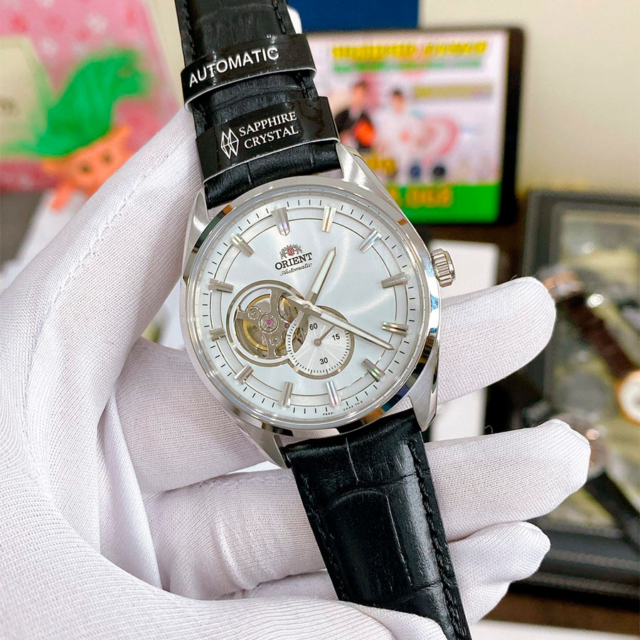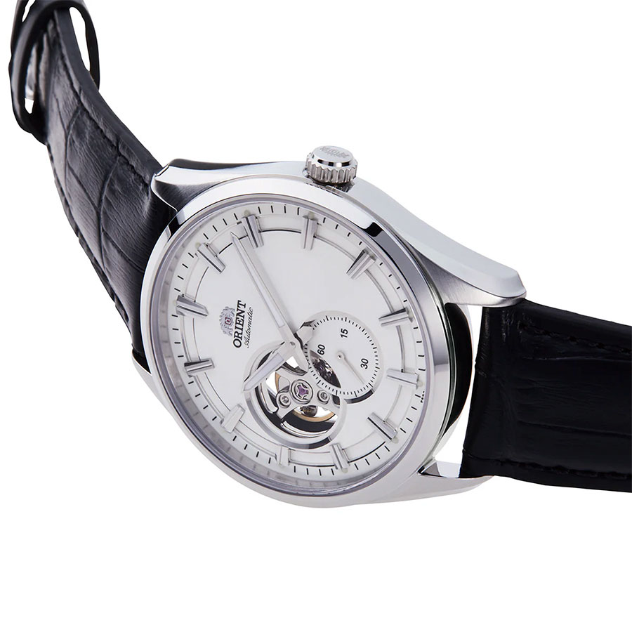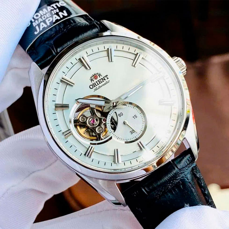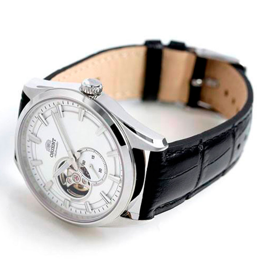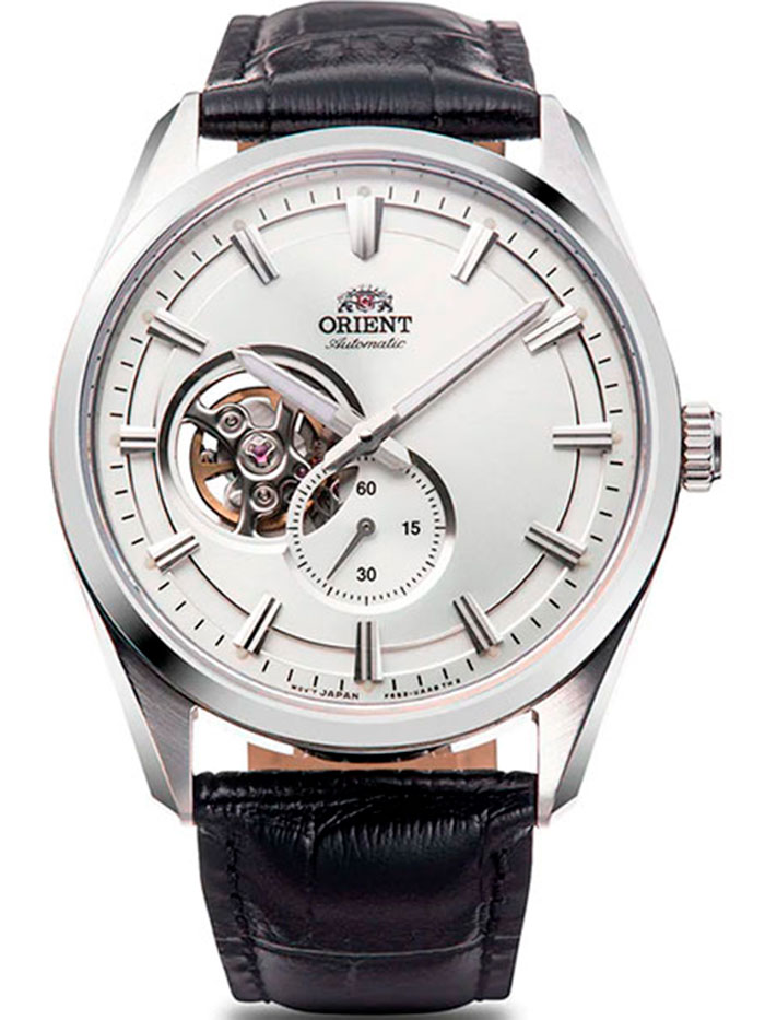Мужские механические наручные часы Orient RN-AR0003S с автоподзаводом и возможностью ручного завода. Коллекция Automatic. Калибр механизма — F6T22. Запас хода не менее 40-ка часов. Количество камней - 22. Функция стоп-секунда (остановка секундной стрелки для установки точного времени). На циферблате прозрачное окошко, через него частично видно работу механизма. Установлено сапфировое стекло устойчивое к царапинам. Стрелки и метки покрыты люминесцентным напылением (светятся в темноте). Завинчивающаяся прозрачная задняя крышка. Кожаный ремешок. Водонепроницаемость WR50 (5 атм).