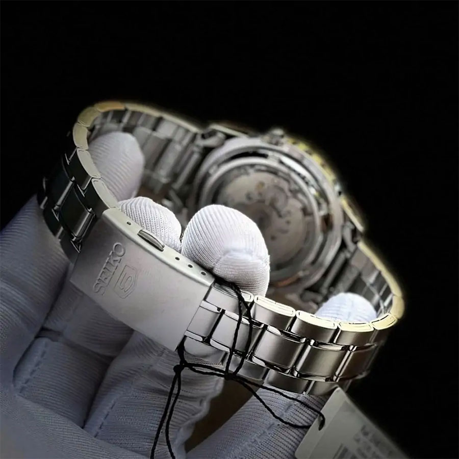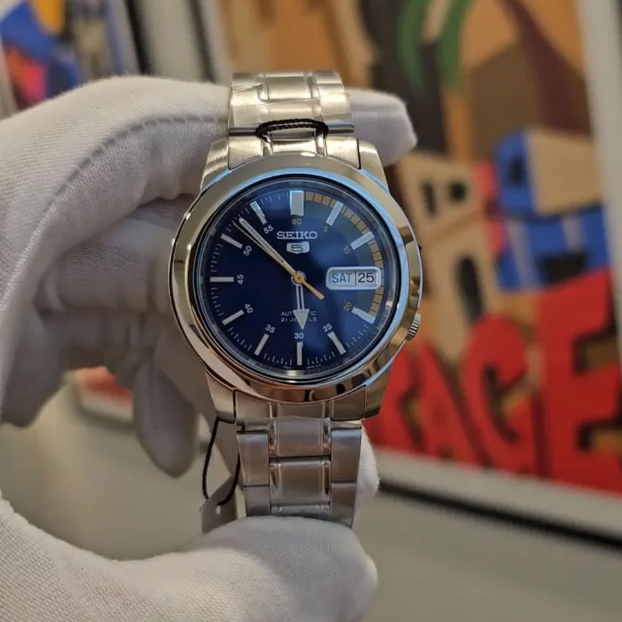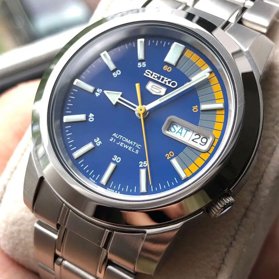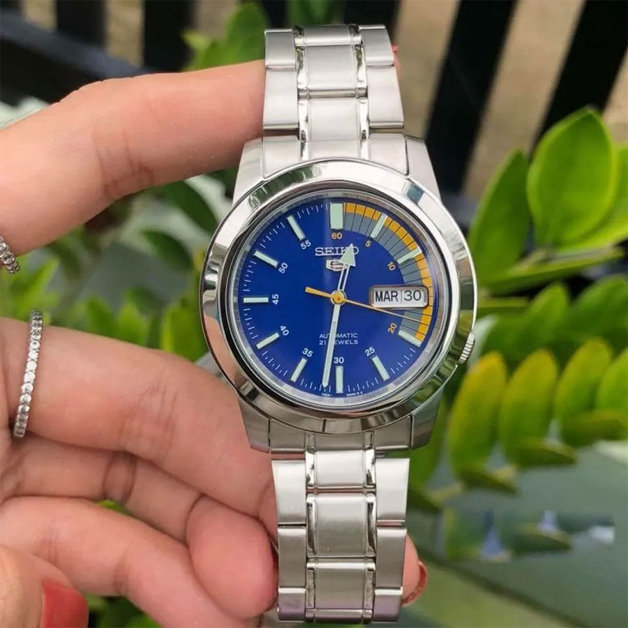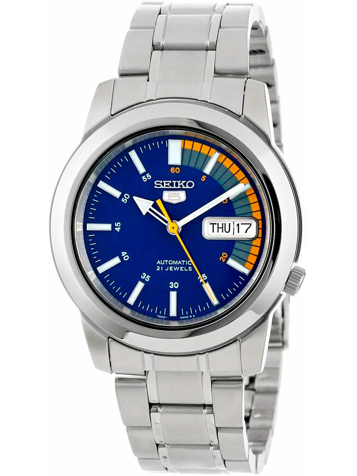 Мужские механические наручные часы с автоподзаводом Seiko SNKK27K1 коллекции Seiko 5. Калибр механизма — 7S26. Запас хода - не менее 40-ка часов. 21 600 полуколебаний в час. Количество камней - 21. На данной модели отображается дата и день недели. Стрелки и метки покрыты люминесцентным напылением LumiBright (светятся в темноте). Установлено минеральное стекло повышенной прочности Hardlex Crystal. Прозрачная завинчивающаяся задняя крышка часов. Стальной браслет. Водонепроницаемость WR (3 атм).