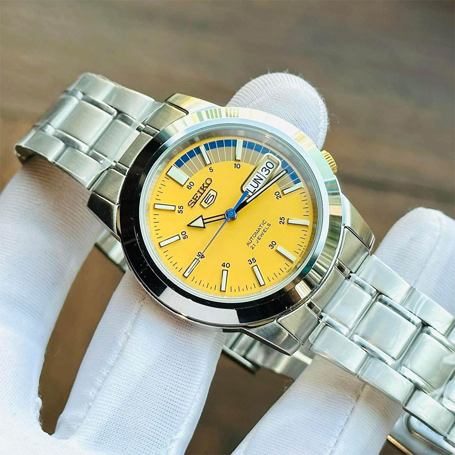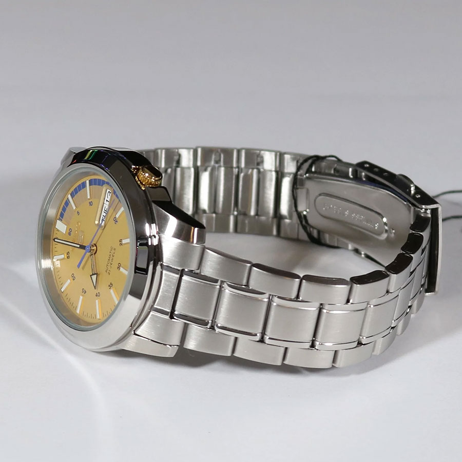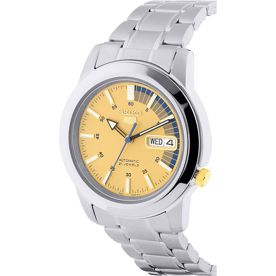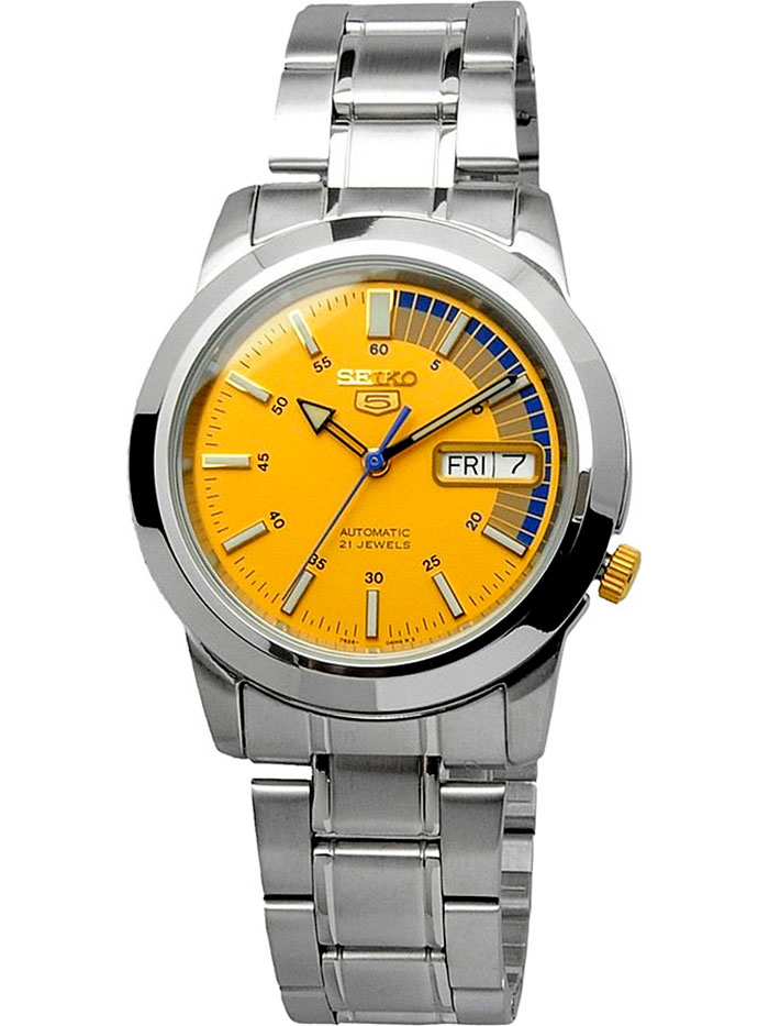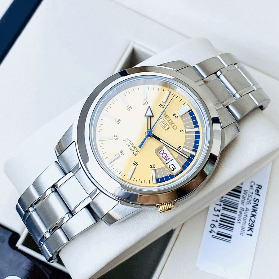 Мужские механические наручные часы с автоподзаводом Seiko SNKK29K1 коллекции Seiko 5. Калибр механизма — 7S26. Запас хода - не менее 40-ка часов. 21 600 полуколебаний в час. Количество камней - 21. На данной модели отображается дата и день недели. Стрелки и метки покрыты люминесцентным напылением LumiBright (светятся в темноте). Установлено минеральное стекло повышенной прочности Hardlex Crystal. Прозрачная завинчивающаяся задняя крышка часов. Стальной браслет. Водонепроницаемость WR (3 атм).
