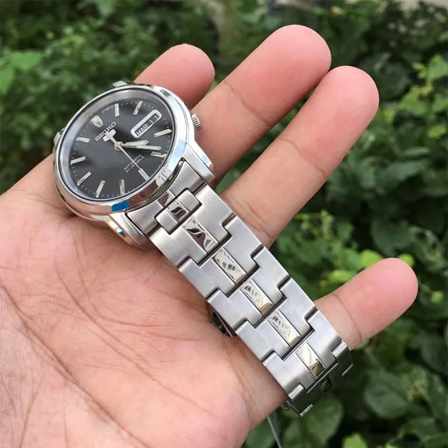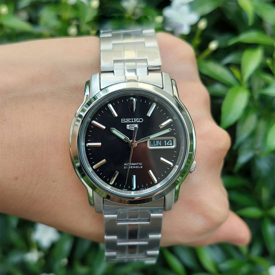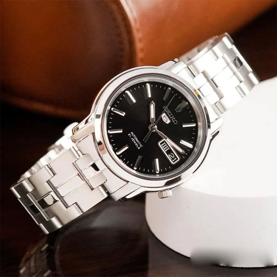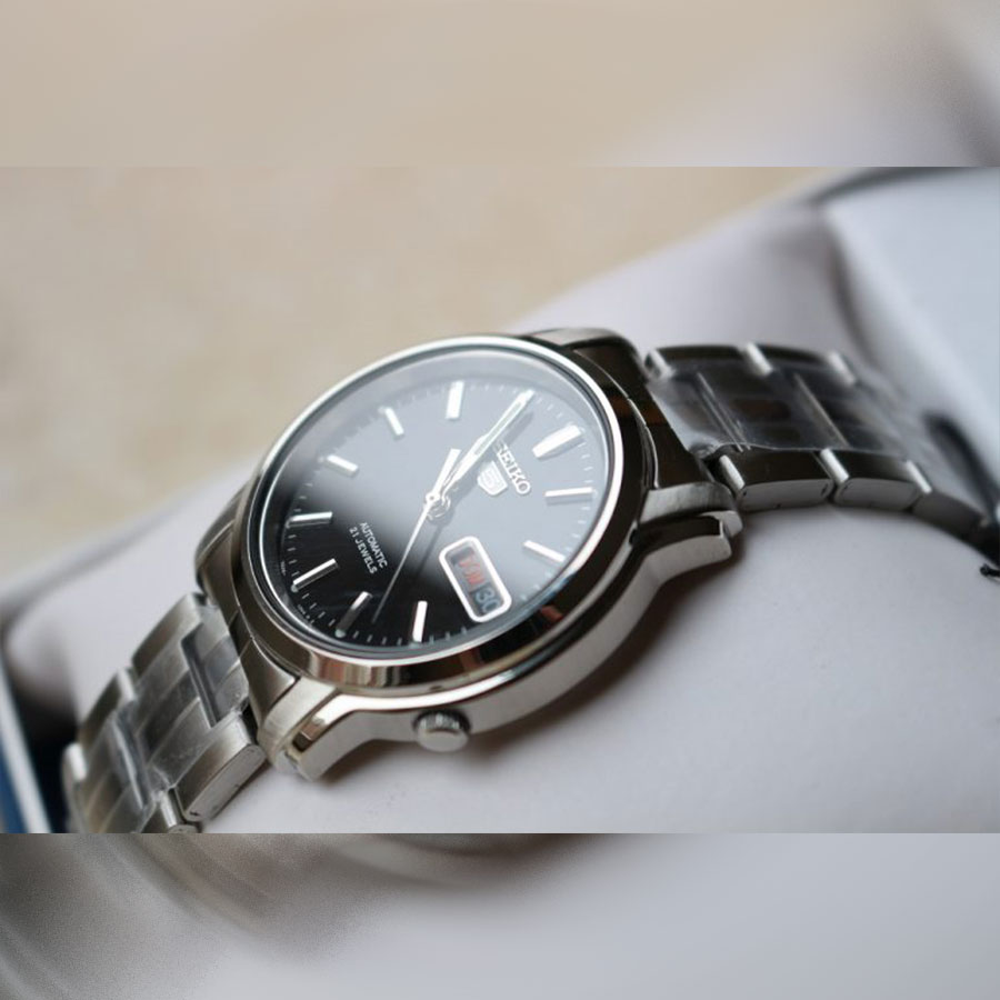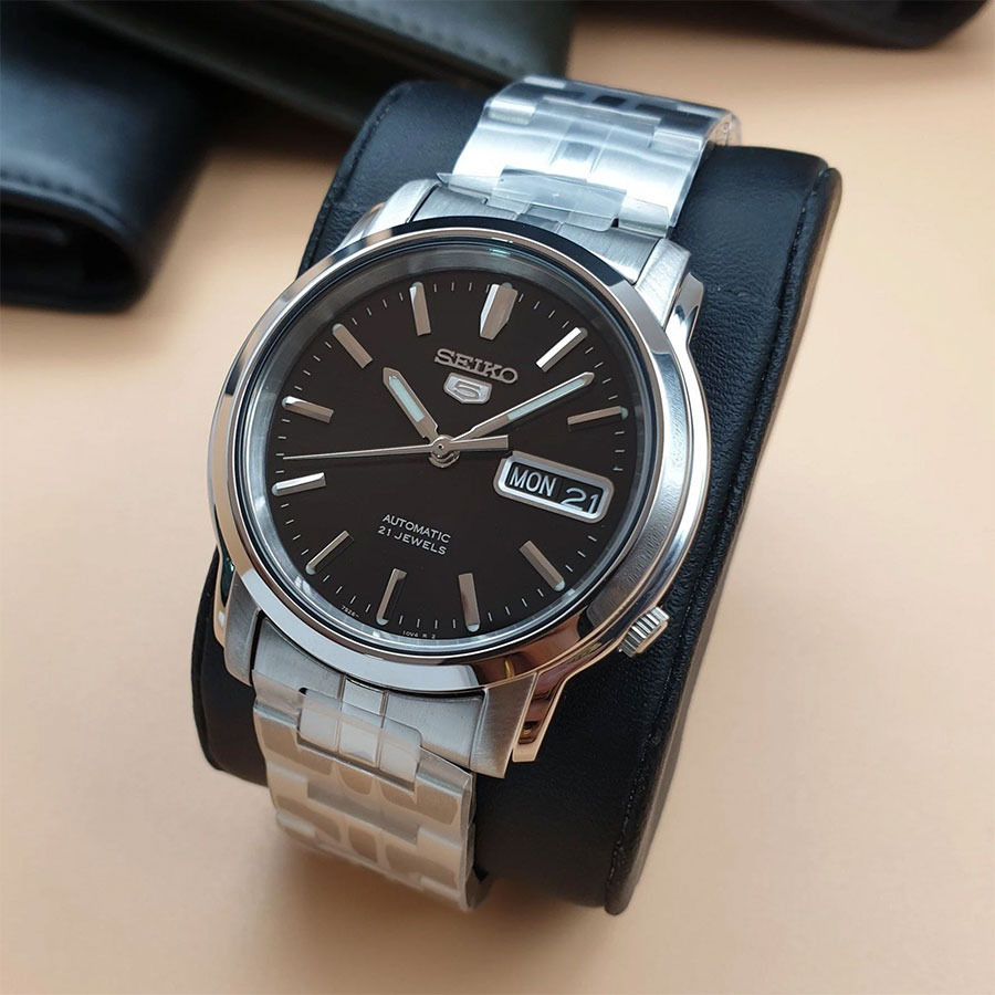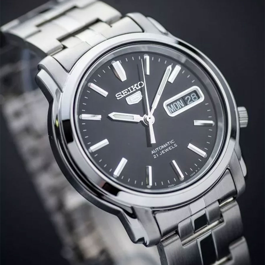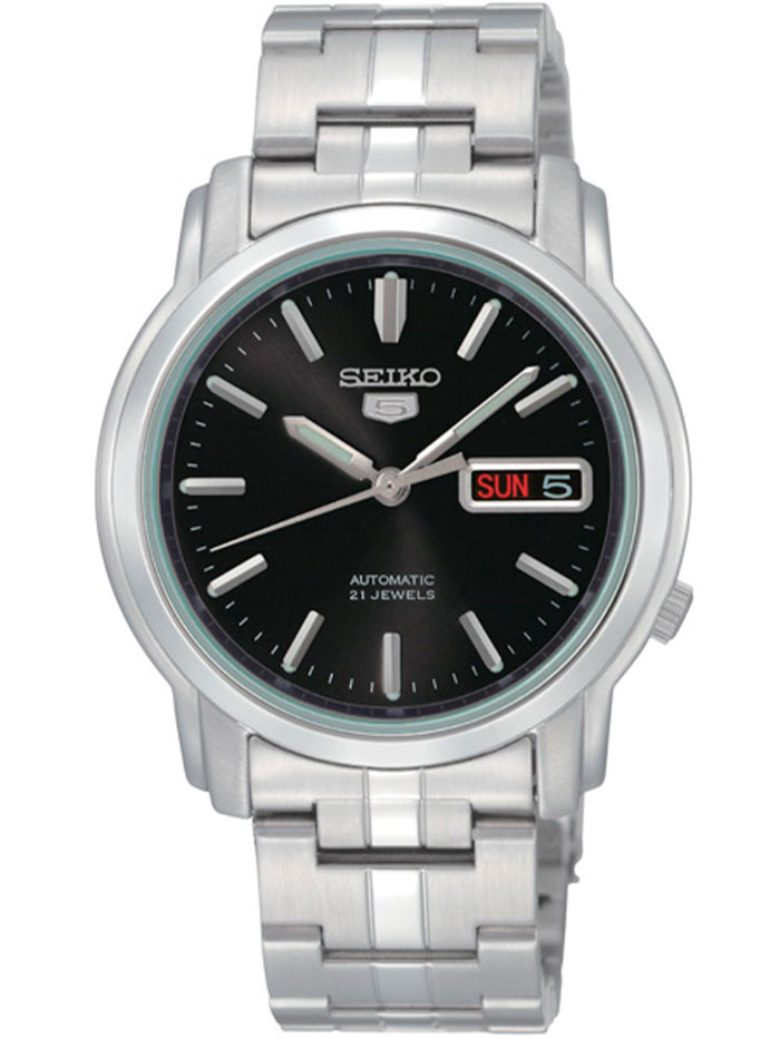 Мужские механические наручные часы с автоподзаводом Seiko SNKK71K1 коллекции Seiko 5. Калибр механизма — 7S26. Запас хода - не менее 40-ка часов. 21 600 полуколебаний в час. Количество камней - 21. На данной модели отображается дата и день недели. Стрелки и метки покрыты люминесцентным напылением LumiBright (светятся в темноте). Установлено минеральное стекло повышенной прочности Hardlex Crystal. Прозрачная завинчивающаяся задняя крышка часов. Стальной браслет. Водонепроницаемость WR (3 атм).