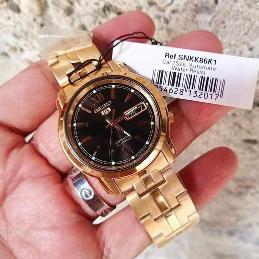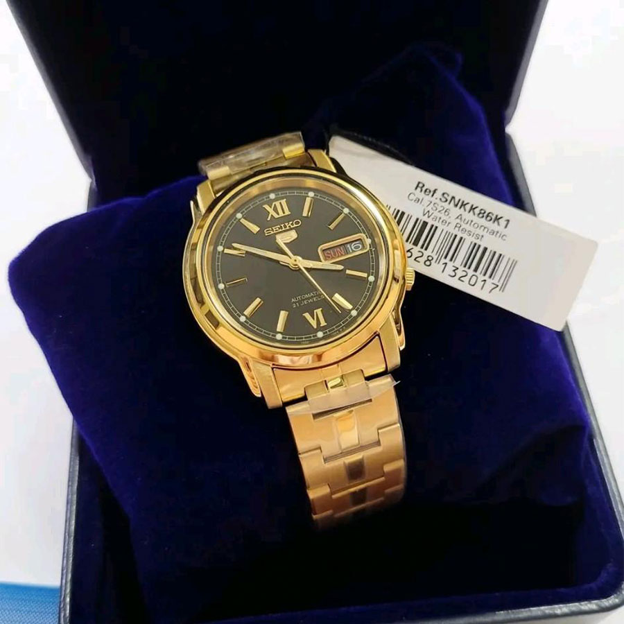 Мужские механические наручные часы с автоподзаводом Seiko SNKK86K1 коллекции Seiko 5. Калибр механизма — 7S26. Запас хода - не менее 40-ка часов. 21 600 полуколебаний в час. Количество камней - 21. На данной модели отображается дата и день недели. Стрелки и метки покрыты люминесцентным напылением LumiBright (светятся в темноте). Установлено минеральное стекло повышенной прочности Hardlex Crystal. Прозрачная завинчивающаяся задняя крышка часов. Стальной браслет. На корпус и браслет нанесено стойкое PVD покрытие. Водонепроницаемость WR (3 атм).