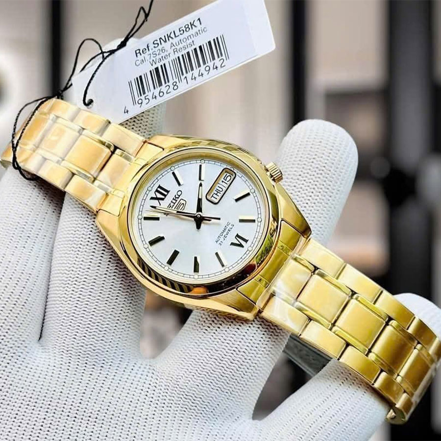 Мужские механические наручные часы с автоподзаводом Seiko SNKL58K1 коллекции Seiko 5. Калибр механизма — 7S26. Запас хода - не менее 40-ка часов. 21 600 полуколебаний в час. Количество камней - 21. На данной модели отображается дата и день недели. Стрелки и метки покрыты люминесцентным напылением LumiBright (светятся в темноте). Установлено минеральное стекло повышенной прочности Hardlex Crystal. Прозрачная завинчивающаяся задняя крышка часов. Стальной браслет. На корпус и браслет нанесено стойкое PVD покрытие. Водонепроницаемость WR (3 атм).