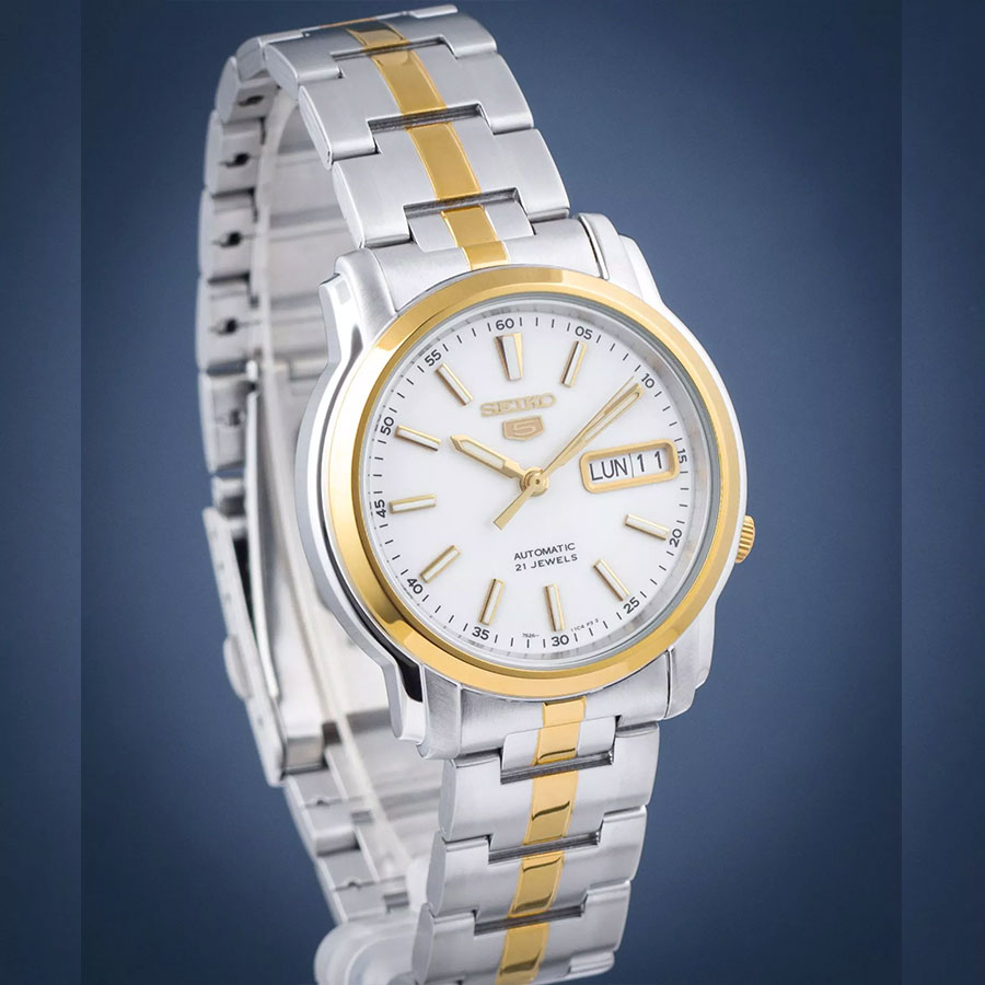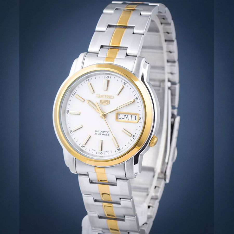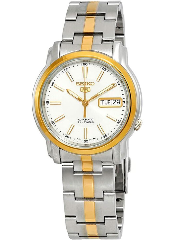 Мужские механические наручные часы с автоподзаводом Seiko SNKL84K1 коллекции Seiko 5. Калибр механизма — 7S26. Запас хода - не менее 40-ка часов. 21 600 полуколебаний в час. Количество камней - 21. На данной модели отображается дата и день недели. Стрелки и метки покрыты люминесцентным напылением LumiBright (светятся в темноте). Установлено минеральное стекло повышенной прочности Hardlex Crystal. Прозрачная завинчивающаяся задняя крышка часов. Стальной браслет. На корпус и браслет частично нанесено стойкое PVD покрытие. Водонепроницаемость WR (3 атм).