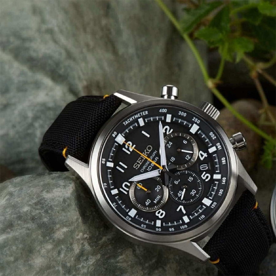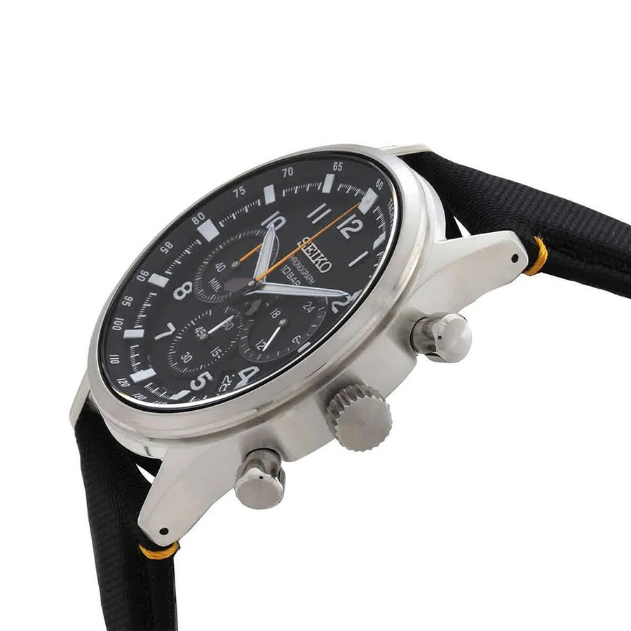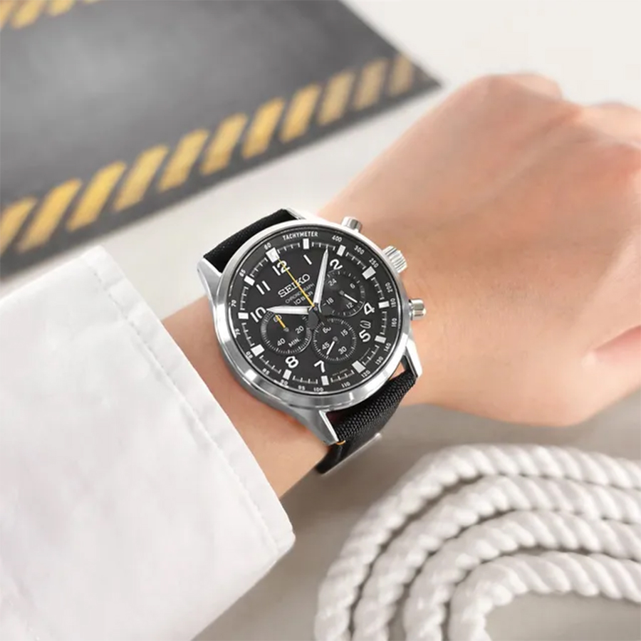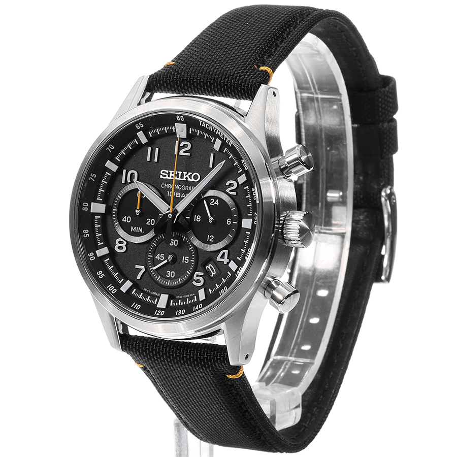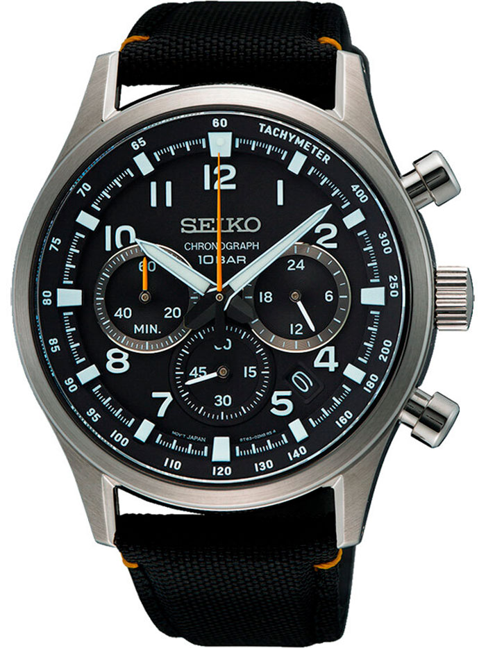 Мужские кварцевые наручные часы с хронографом (секундомером) Seiko SSB449P1 коллекции CS Sports. Калибр механизма — 8T63. Секундомер может отсчитывать до 60 минут с точностью 1/5 с. На данной модели отображается дата и время суток (24-х часовой циферблат). На циферблате присутсвует шкала тахиметра для измерения средней скорости движения. Минеральное стекло повышенной прочности Hardlex Crystal. Стрелки и метки покрыты люминесцентным напылением LumiBright (светятся в темноте). Завинчивающаяся задняя крышка. Нейлоновый ремешок. Водонепроницаемость WR100 (10 атм).