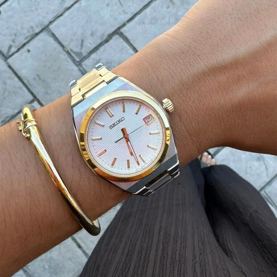 Женские кварцевые наручные часы Seiko SUR578P1 коллекции Discover More. Калибр механизма — 6N42. На данной модели отображается текущая дата. Установлено сапфировое стекло устойчивое к царапинам. Завинчивающаяся задняя крышка. На корпус и браслет частично нанесено стойкое PVD покрытие. Водонепроницаемость WR100 (10 атм).